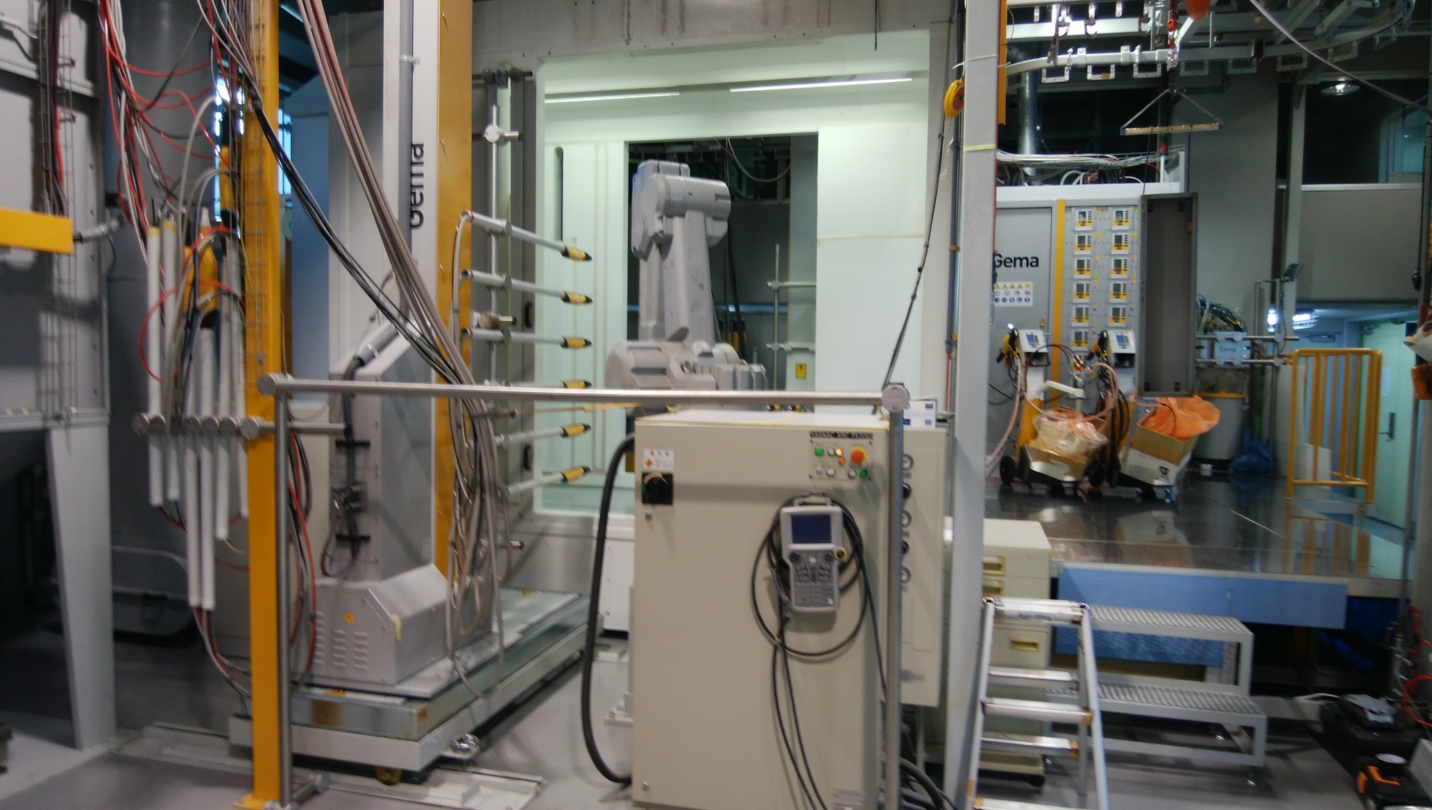 新製品の最強パワーを誇る静電塗装ハンドガン「OptiFlex Pro」の製品説明を受けデモ実演を見学致しました。