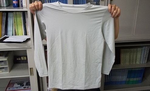 またアルゴ涼感インナー(画像右)、こちらは素材に熱を放射する人工鉱石を織り込んで有ります。サンプルをお借り出来たので弊社営業が体験しましたがかなり効果が有るとの事でした。